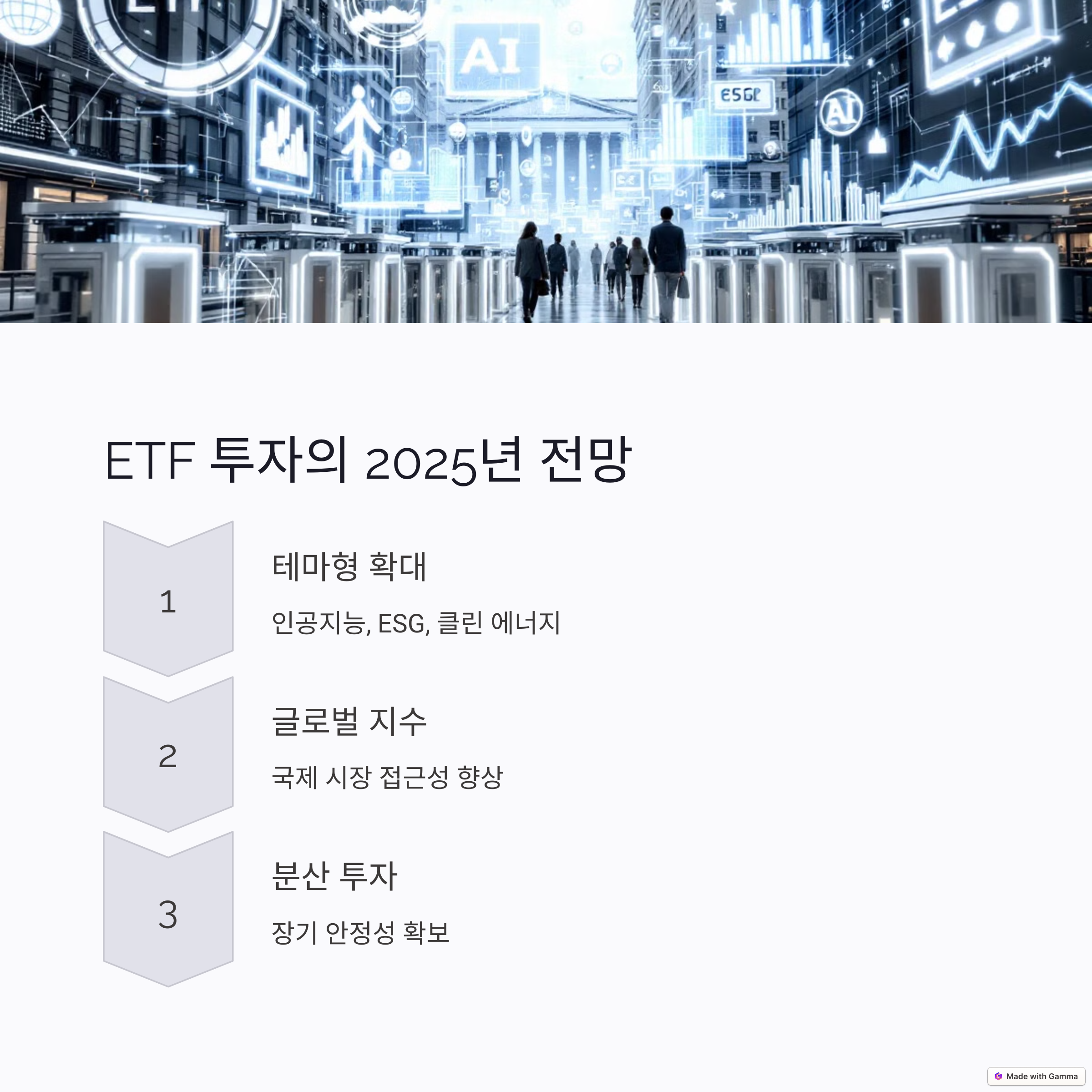 | ETF란? | 여러 종목에 분산 투자 가능한 상장지수펀드 |