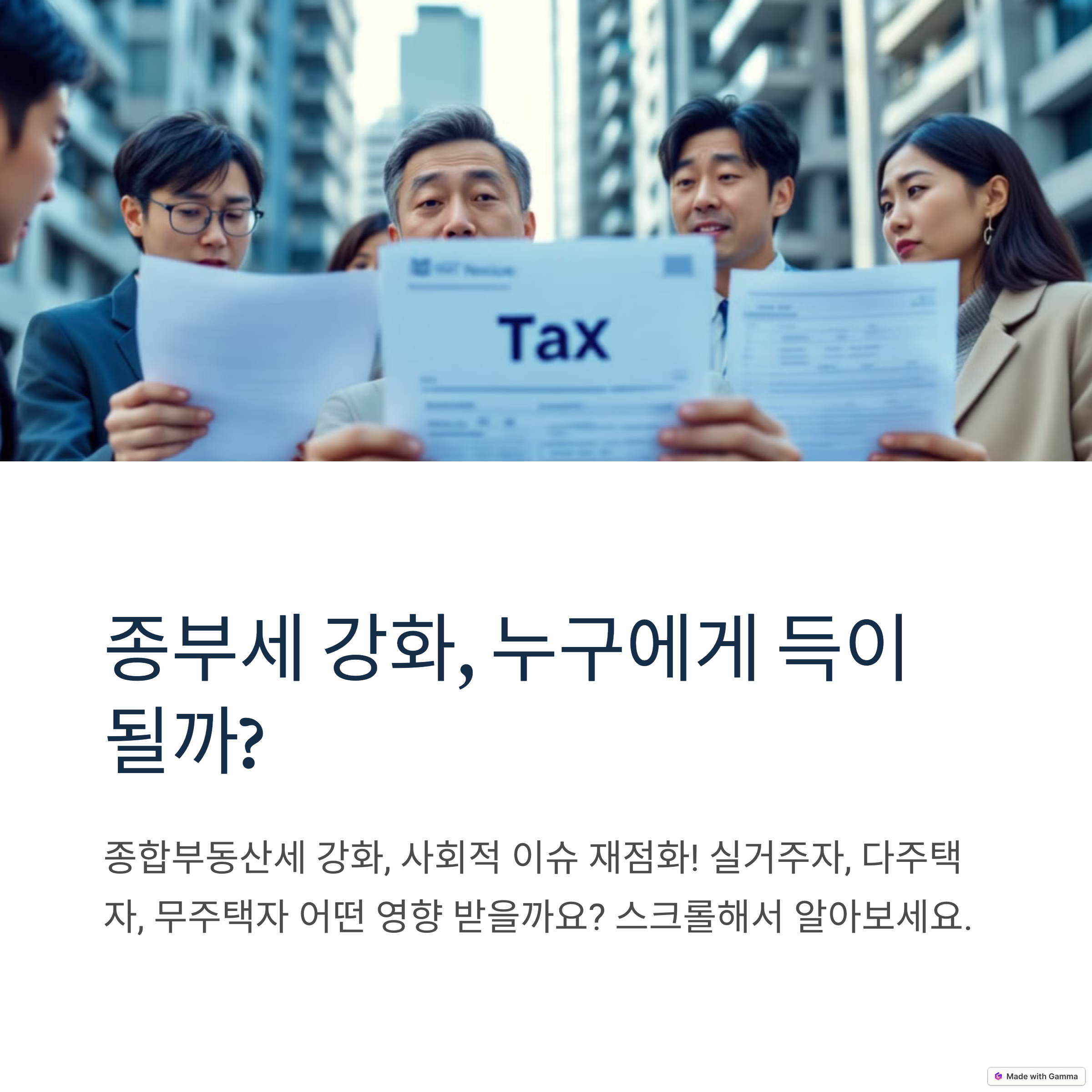 종합부동산세, 흔히 종부세라고 불리는 이 세금은 고가 주택을 다수 보유한 사람들만의 이야기라고 여겨지곤 했습니다. 하지만 2025년 개정안을 기점으로 과세 기준과 공시가격 산정 방식이 달라지면서 이제는 실거주자에게까지 영향을 미칠 수 있는 세금이 되었습니다. 특히 서울과 수도권처럼 공시가격이 빠르게 오르고 있는 지역에서는 1주택자임에도 불구하고 세부담 증가를 체감하는 사례가 늘고 있습니다. 그렇다면 이번 종부세 강화 정책은 누구에게 실질적인 부담이 될까요? 반대로 이득을 보는 계층은 누구일까요? 오늘은 종부세 개정안의 핵심 내용을 정리하고 실제 상황별 유불리를 구체적으로 살펴보겠습니다.