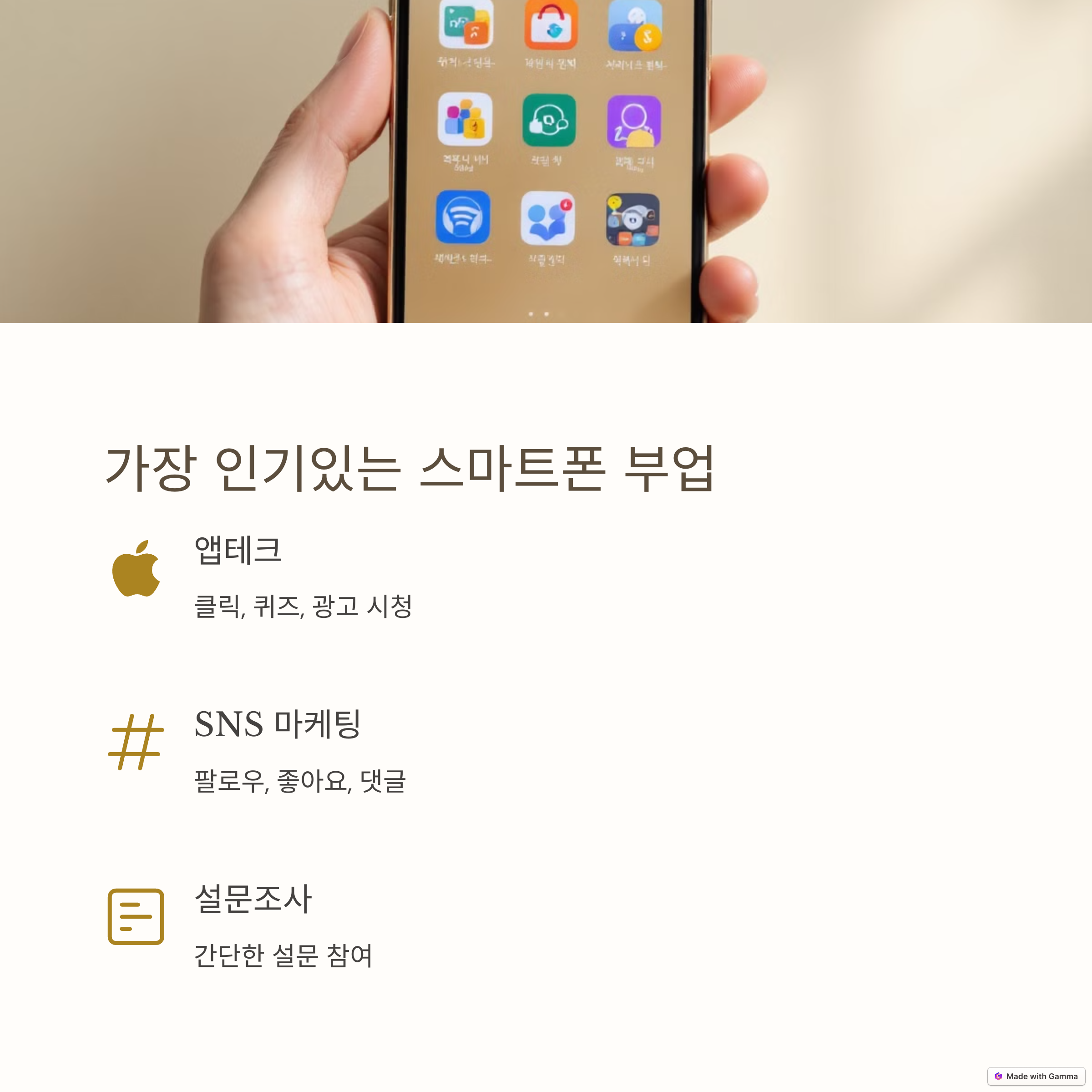 | 스마트폰 수익 루틴 | 설문, 콘텐츠, 리셀 등 실전 부업 전략 구성 |